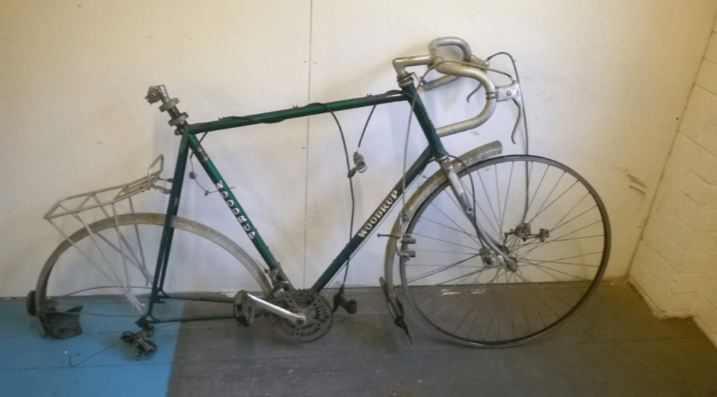 Part of the charm of a community bike recycling cooperative is the ramshackle aspect of the bikes on offer. You find all sorts, previously owned by people from all walks of life. Kids mountain bikes nestled up against faded Peugeot racing bikes from the 80s. Tired tourers next to city bikes desperate for a new owner to take them out on the town again. Then, tucked away at the back, a green glint caught my eye.