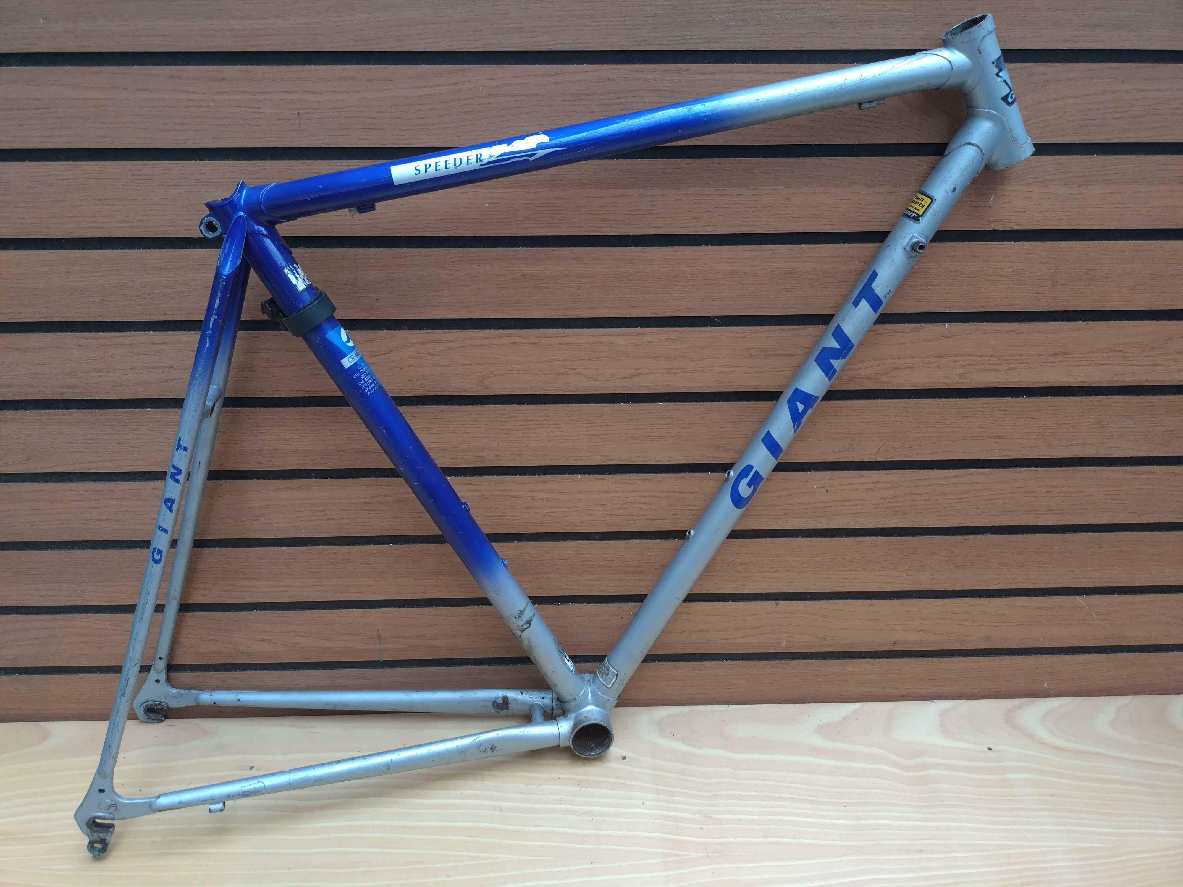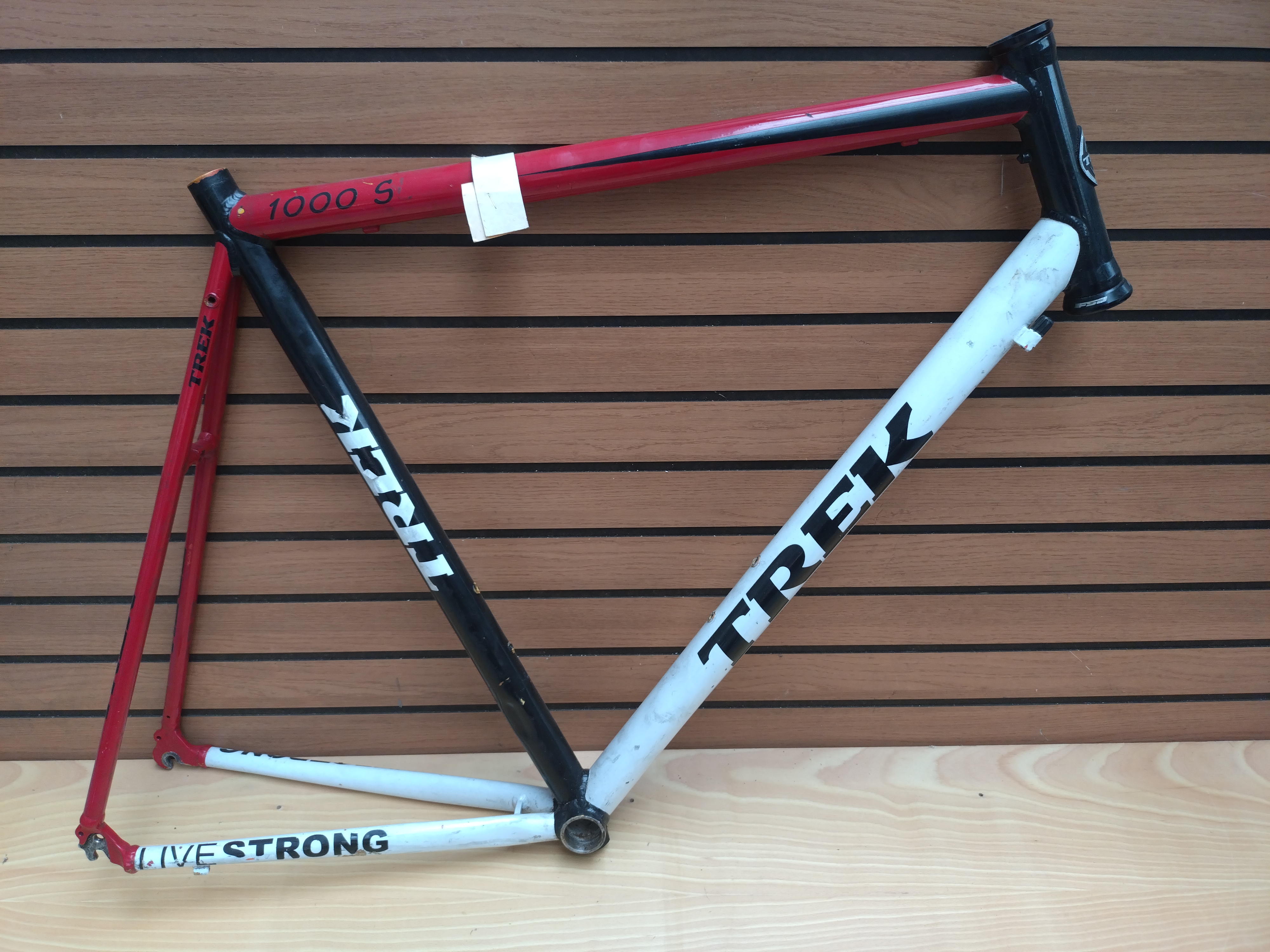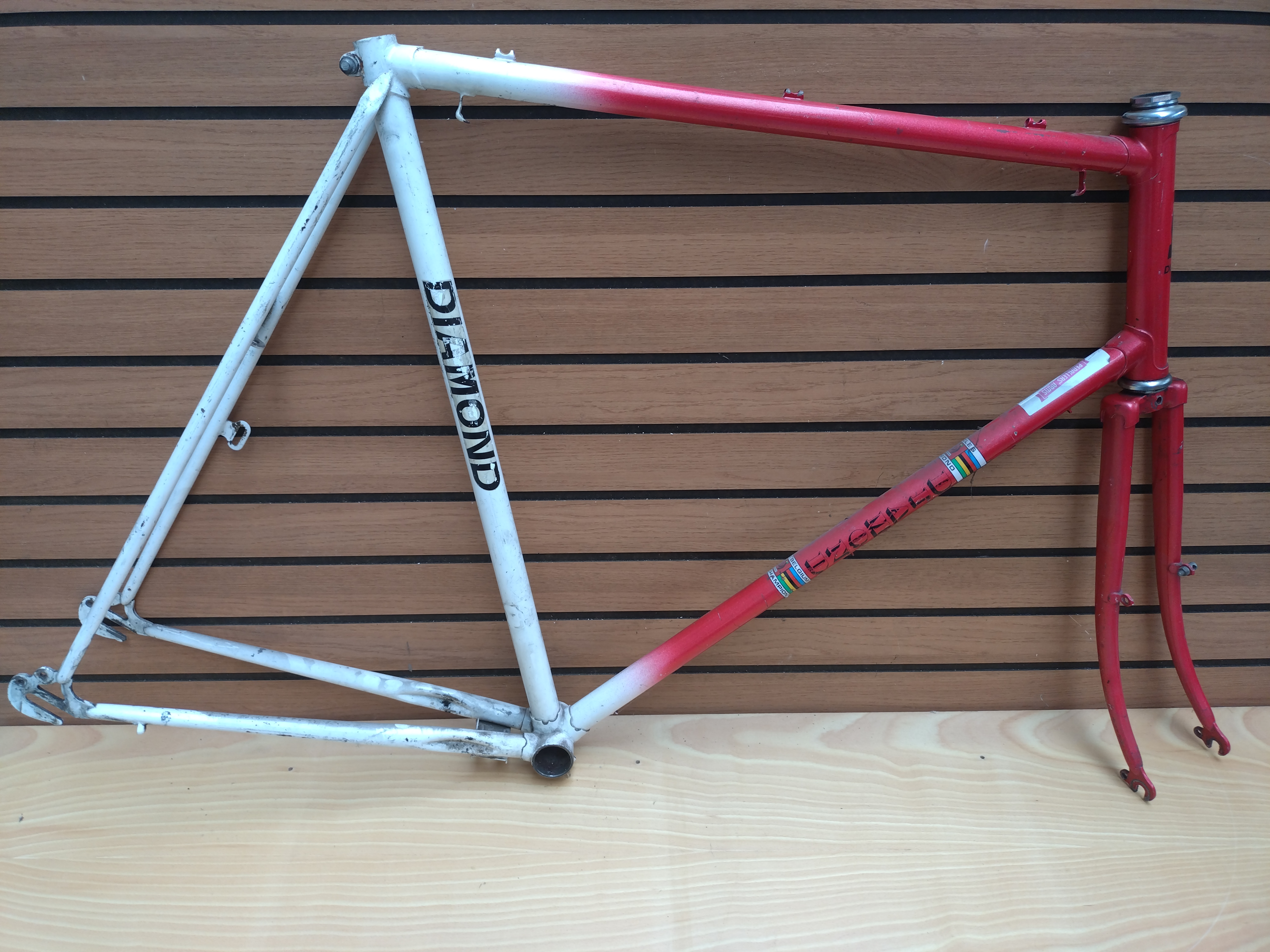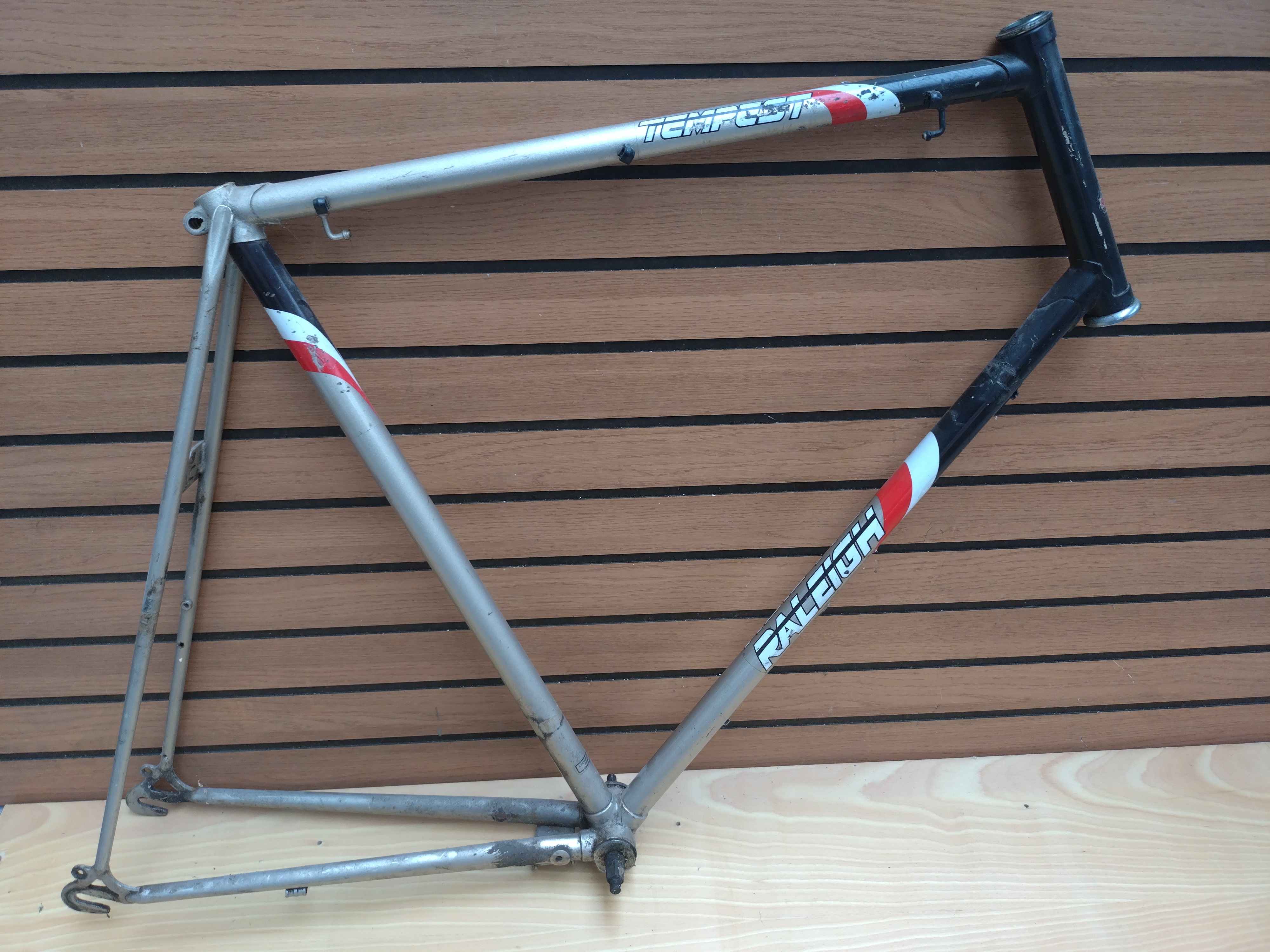 Typically sold from £10 and up. If you see a frame you are interested in, get in touch and make us an offer. See below for a sample of the frames we have in the workshop at the moment, click on an image to see the frame size (measured from centre of bottom bracket to top of seat tube) and frame material.